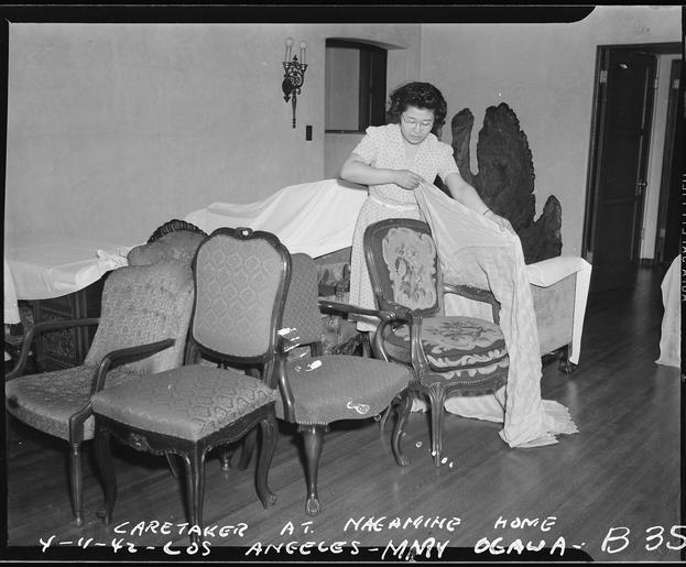 Keywords: Los Angeles, California. Caretaker, Mary Ogawa, making preparations to close the Nagamine home prio . . . - NARA - 536784.tif Scope and content The full caption for this photograph reads Los Angeles California Caretaker Mary Ogawa making preparations to close the Nagamine home prior to evacuation of residents of Japanese ancestry from this area Evacuees of Japanese descent will spend the duration in War Relocation Authority centers General notes 536784 Local identifier 210-G-B35 Department of the Interior War Relocation Authority 02/16/1944 - 06/30/1946 NARA-Author Albers Clem Photographer 8452194 <br /> Still Picture Records Section Special Media Archives Services Division NWCS-S National Archives at College Park 8601 Adelphi Road College Park MD 20740-6001 1942-04-11 Record group Record Group 210 Records of the War Relocation Authority 1941 - 1989 Record group ARC 537 Central Photographic File of the War Relocation Authority compiled 1942 - 1945 Series ARC 536000 File unit File unit ARC Variant control numbers NAIL Control Number NWDNS-210-G-B35 yes Other versions <gallery> File Los_Angeles _California _Caretaker _Mary_Ogawa _making_preparations_to_close_the_Nagamine_home_prio_ _ _ _-_NARA_-_536784 tif tif File Los_Angeles _California _Caretaker _Mary_Ogawa _making_preparations_to_close_the_Nagamine_home_prio_ _ _ _-_NARA_-_536784 jpg jpg </gallery> NARA-cooperation PD-USGov Japanese American internment processing in Los Angeles NARA TIF images with categorized JPGs |