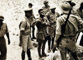 Keywords: people outdoor Lot 11588-23: North African Campaign. Italian Fighter Pilot and “Plane” bagged by South Africans at El Alamein. Men of a South African Brigade shot down a Macchi fighter and took the pilot, an Italian, prisoner. The pilot is shown after his wounds were dressed. He is surrounded by his captors. Office of War Information Photograph. (2016/02/11). Lot 11588-23: North African Campaign. Italian Fighter Pilot and “Plane” bagged by South Africans at El Alamein. Men of a South African Brigade shot down a Macchi fighter and took the pilot, an Italian, prisoner. The pilot is shown after his wounds were dressed. He is surrounded by his captors. Office of War Information Photograph. (2016/02/11). |
