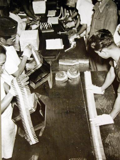 | Keywords: Lot 11630-5: Natives assembling rounds of machine-gun cartridges in one of the munition plants belonging to the Royal Netherlands East Indies Army, circa 1942. Office of War Information Photograph. (2016/01/15) Lot 11630-5: Natives assembling rounds of machine-gun cartridges in one of the munition plants belonging to the Royal Netherlands East Indies Army, circa 1942. Office of War Information Photograph. (2016/01/15) | ||||