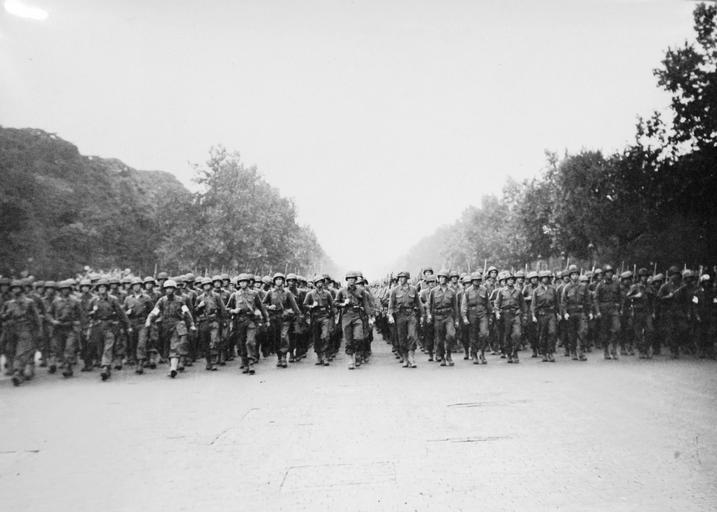 | Keywords: blackandwhite monochrome snow outdoor black and white Lot 4568-1: U.S. Troops March down Champs Elysee, Paris, France, during liberation on August 25, 1944. Photographed through Mylar sleeve. 7/10/2015). Lot 4568-1: U.S. Troops March down Champs Elysee, Paris, France, during liberation on August 25, 1944. Photographed through Mylar sleeve. 7/10/2015). |