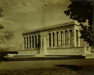 | Keywords: architecture colonnade monochrome Lot 6591-23: American Memorial near Chateau-Thierry, France. This memorial, located on Hill 204, west of Chateau-Thierry, commemorates the services of the American forces which stopped the German advance on Paris in July 1918, and later, in conjunction with the French armies, reduced the Marne Salient and turned the tide of the battle in favor of the Allies. Shown: West Face – American Memorial – Chateau Thierry. President Franklin D. Roosevelt Collection-Photograph Album presented by General John J. Pershing, USA (Ret.), Chairman, American Battle Monuments Commission. The photographs in the collection were taken in 1923 to show the memorials erected by the American Battle Monuments Commission. Photographed through Mylar sleeve. (2015/10/09). Lot 6591-23: American Memorial near Chateau-Thierry, France. This memorial, located on Hill 204, west of Chateau-Thierry, commemorates the services of the American forces which stopped the German advance on Paris in July 1918, and later, in conjunction with the French armies, reduced the Marne Salient and turned the tide of the battle in favor of the Allies. Shown: West Face – American Memorial – Chateau Thierry. President Franklin D. Roosevelt Collection-Photograph Album presented by General John J. Pershing, USA (Ret.), Chairman, American Battle Monuments Commission. The photographs in the collection were taken in 1923 to show the memorials erected by the American Battle Monuments Commission. Photographed through Mylar sleeve. (2015/10/09). |