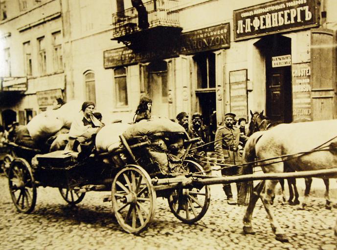 | Keywords: vehicle Lot-8885-28: WWI – German Activities. Jewish refugees of Poland following the German advance in the hope of reoccupying the huts from which the Russians had driven them. The entire harness of the horses, except for the collar, is made of rope, the Russians having confiscated all of the leather harness which fell into their hands. Courtesy of the Library of Congress. (2016/10/04). Lot-8885-28: WWI – German Activities. Jewish refugees of Poland following the German advance in the hope of reoccupying the huts from which the Russians had driven them. The entire harness of the horses, except for the collar, is made of rope, the Russians having confiscated all of the leather harness which fell into their hands. Courtesy of the Library of Congress. (2016/10/04). |
