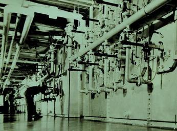 | Keywords: Lot-9432-22: Sulfur, Scare In World War I, Is Plentiful Today. Although not generally know, sulfur is one of warfare’s vital elements. Indispensable in the manufacture of explosives, it is also a component of sulfuric acid, which is one of the important wartime chemicals. Unlike the condition prevailing in World War I, when a shortage of sulfur, due largely to the lack of improved mining facilities, was a threat to the Allied war effort, the element is plentiful today. One of the world’s richest single sources of Sulfur is the stratum in Louisiana and Texas, on the Gulf Coast of the United States. Shown: Forcing super-heated water into the stratum, some 1,500 feet underground, to melt the sulfur is the first step in mining. This bank of gas-fired boilers furnishes the hot water. Office of War Information Photograph, 9-15 April 1942. Original photograph is small. (2015/12/18). Lot-9432-22: Sulfur, Scare In World War I, Is Plentiful Today. Although not generally know, sulfur is one of warfare’s vital elements. Indispensable in the manufacture of explosives, it is also a component of sulfuric acid, which is one of the important wartime chemicals. Unlike the condition prevailing in World War I, when a shortage of sulfur, due largely to the lack of improved mining facilities, was a threat to the Allied war effort, the element is plentiful today. One of the world’s richest single sources of Sulfur is the stratum in Louisiana and Texas, on the Gulf Coast of the United States. Shown: Forcing super-heated water into the stratum, some 1,500 feet underground, to melt the sulfur is the first step in mining. This bank of gas-fired boilers furnishes the hot water. Office of War Information Photograph, 9-15 April 1942. Original photograph is small. (2015/12/18). |