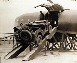 | Keywords: vehicle aircraft Lot-9434-19: “Flying Troops Trains” For A Speedier War. Original caption, “To step up the war pace, America is finding more and more uses for the fastest means of transportation – the airplane. Not only is she hauling troops by air, but heavy equipment, such as anti-tank guns, scout cars, and motorcycles, as well. Here is an airborne infantry unit in training. They’re using “mock-ups,” replicas of the transport planes they’ll use when their training is complete. Shown: A “Jeep,” the Army’s versatile scout car, goes into the plane. The airborne infantry follows on the heels of parachute troops, whose job is to obtain an objective. Office of War Information Photograph, April 22-28, 1942. (2016/01/08). Lot-9434-19: “Flying Troops Trains” For A Speedier War. Original caption, “To step up the war pace, America is finding more and more uses for the fastest means of transportation – the airplane. Not only is she hauling troops by air, but heavy equipment, such as anti-tank guns, scout cars, and motorcycles, as well. Here is an airborne infantry unit in training. They’re using “mock-ups,” replicas of the transport planes they’ll use when their training is complete. Shown: A “Jeep,” the Army’s versatile scout car, goes into the plane. The airborne infantry follows on the heels of parachute troops, whose job is to obtain an objective. Office of War Information Photograph, April 22-28, 1942. (2016/01/08). |