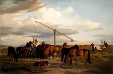View Original:Lotz_Watering_the_Horses_on_the_Puszta_1860s.jpg (840x553)