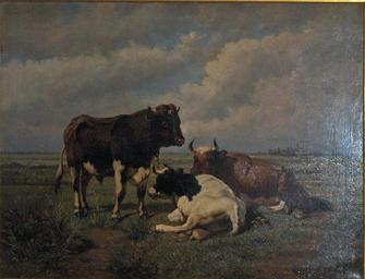 Keywords: Louis Robbe 003.JPG en Two cows and a bull oil painting on canvas 100 x 130 cm by Louis Robbe 1806-1887 ; private collection own Georges Jansoone JoJan - artwork by Louis Robbe 2010-05-01 PD-Old cc-by-3 0 Louis Robbe