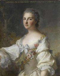 | Keywords: Louise de Lorraine, princesse de Turenne par Nattier.jpg Artwork Creator Jean-Marc Nattier Portrait of Louise Henriette Gabrielle de Lorraine 1718-1788 Princesse de Turenne Duchess of Bouillon 1746 Oil on canvas cm 80 65 Institution Versailles http //www google co uk/imgres imgurl http //2 bp blogspot com/_hjD61YU8VYs/SgfwqzM9P1I/AAAAAAAAF_U/b2L57WLO8lQ/s400/Victoire 2Bde 2BFrance 2Bby 2BJean 2BMarc 2BNattier jpg imgrefurl http //ann-lauren blogspot com/2009/05/18th-cent-princess-victoire-louise html h 381 w 308 sz 33 tbnid q0JffGxkCdeQjM tbnh 250 tbnw 202 prev /images 3Fq 3Djean 2Bmarc 2Bnattier hl en usg __5LGC_n2DCq4NOzvvlQ9eYQFhrq8 ei AkTUS5TkEISi0gStm-TZDQ sa X oi image_result resnum 9 ct image ved 0CAwQ9QEwCA 000PE007984 other versions PD-old-100 DEFAULTSORT 1746; Louise Henriette Gabrielle de Lorraine Portrait paintings by Jean-Marc Nattier 18th-century portrait paintings in the Musée national du Château de Versailles Louise of Lorraine Duchess of Bouillon 1746 oil on canvas paintings in France Portrait 1746 portrait paintings from France 18th-century oil portraits of standing women at half length Females wearing rouge in portraits Females with clothing with pearls in art Garland of flowers in portrait paintings Paintings with descriptive text on the artwork Portrait paintings of females with flowers Portrait paintings of women of France Powdered hair in art Rococo portrait paintings of women White clothing in art female Princesses of Turenne |