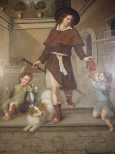 | Keywords: Louise Seidler - Rochusbild Bingen.jpg  Artwork Creator Louise Seidler Das Gemälde zeigt eine Episode aus der Vita des Hl Rochus Es wurde von Louise Seidler nach einer Skizze Goethes angefertigt Es befindet sich heute in der Grabkapelle des Erbauers der neuen Rochuskapelle Pfarrer Engelhardt Vermerk von 1819 Das Gemälde St Rochus wurde vom Großherzoglichen Hof in Sachsen-Weimar angeliefert Es ist von einem lutherischen adeligen Fräulein namens Luise Seidler gemalt worden Der Name steht auf der Seite des Bildes neben den Worten ˜Ex Voto ™ zitiert nach Krasenbrink/Redenius Goethes Reisen an den Mittelrhein hrsg von der St Rochusbruderschaft Bingen between 1816 1819 oil canvas Rochuskapelle Bingen accession number object history credit line http //www jakobus-wege de/html/bingen-261208 html PD-old-100 Louise Seidler Rochuskapelle Bingen Paintings of Saint Roch |