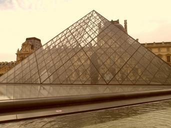 Keywords: louvre paris pyramid france museum glass pyramid evening travel building abendstimmung architecture