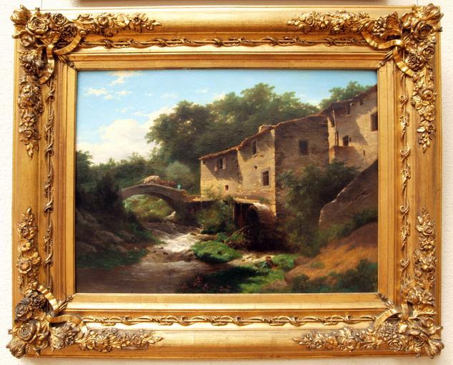 View Original:Louwrens Hendoes (1822-1905), Landschap met watermolen en stenen brug, 1854, Olieverf op doek.JPG (3226x2604)
