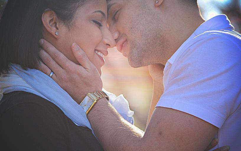 Keywords: love couple happy woman man romantic kiss outdoors lifestyle smile
