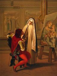 Keywords: Love or dutyb.jpg Assessments 1 Love or Duty Love or Duty chromolithograph of a painter and a nun; published in Paris by Hangard-Mangué His painting of a family is symbolic of what he offers her should she break her vows CALL NUMBER PGA - Caldwell Co --Love or duty D size P P 1873 Castagnola Gabrielé 1828-1883 artist Yes this is a restored version of Image Love or duty jpg flipped horizontally so the text reads correctly with color tones corrected dirt removed and missing chromatic areas replaced and sharpened This differs from Image Love or dutya jpg because the Library of Congress stamp at the bottom border has been erased <br> <gallery>File Delaroche 90-001588-02 jpg A different artist's imagining of this scene</gallery> PD-old Gabriele Castagnola Men and women in art Christian nuns 19th-century art Painters in art 1873 Chromolithographs Fra Filippo Lippi Lucrezia Buti |