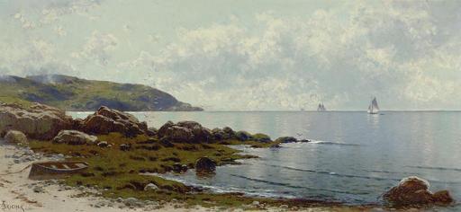 Keywords: Low Tide, Maine by Alfred Thompson Bricher, c 1885.jpg en Low Tide Maine by Alfred Thompson Bricher circa 1885 oil on canvas 15¼ x 32¼ inches Debra Force Fine Art NY Creator Alfred Thompson Bricher ~ 1885 PD-US-unpublished PD-old-auto 1908 DEFAULTSORT Bricher Alfred Thompson Paintings by Alfred Thompson Bricher
