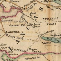 Keywords: Low Wood Gunpowder Mills map.jpg en Detail of A Map of the Lakes in Cumberland Westmorland and Lancashire scale about 3 5 miles to 1 inch in Guide to the Lakes 3rd edition 1821 by Thomas West http //www geog port ac uk/webmap/thelakes/html/lgaz/ws02sd38 htm Engravers Cornelius Pass and N Wolletern 1821 PD-old-100 1821 maps Cornelius Pass Furness Explosives manufacturers |