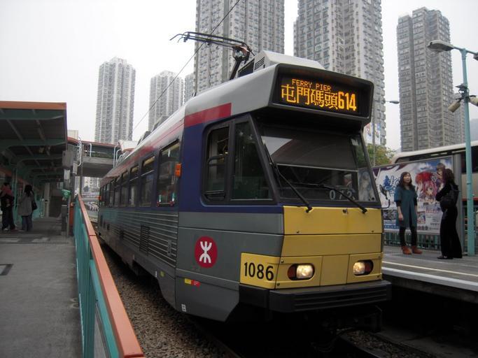 Keywords: LRT 614 Town Centre.jpg en MTR LRT Train 1086 on route 614 at Town Centre Stop Own LRT505 09-01-29 Phase II LRV MTR