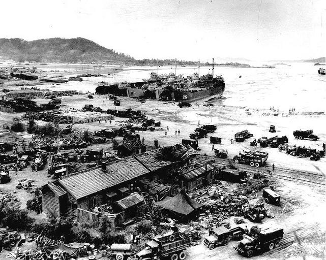 | Keywords: LSTs unloading at Inchon.jpg Inchon Invasion Four w Landing Ship Tank LST s unload men and equipment while high and dry at low tide on Incheon 's Red Beach 16 September 1950 the day after the initial landings there USS DeKalb County LST-715 LST-715 is on the right end of this group which also includes USS Crook County LST-611 LST-611 USS Jefferson County LST-845 LST-845 and one other Another LST is beached on the tidal mud flats at the extreme right Note bombardment damage to the building in center foreground many trucks at work Wolmi-Do island in the left background and the causeway connecting the island to Inchon Ship in the far distance just beyond the right end of Wolmi-Do is USS Lyman K Swenson DD-729 USS Lyman K Swenson DD-729 1950-09-16 US Navy photo http //www navsource org/archives/10/16/1016061101 jpg 80-G-420027 now in the collection of the US National Archives Original uploaded by Mdhennessey Transfered by Finavon PD-USGov-Military-Navy original upload log page en wikipedia LSTs_unloading_at_Inchon jpg Upload date User Bytes Dimensions Comment 2007-05-30 03 57 56 Mdhennessey 137056 740×591 <small><nowiki>Inchon Invasion September 1950 Four LSTs unload men and equipment while high and dry at low tide on Inchon's Red Beach 16 September 1950 the day after the initial landings there LST-715 is on the right end of this group which also includes LST-611</nowiki></small> Battle of Inchon Tank landing ships Low tide in Korea |