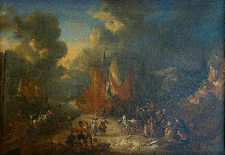 | Keywords: Lucas Smout the Younger and Pieter Bout - Harbour and Fish Market.jpg Artwork Creator Lucas Smout the Younger Creator Pieter Bout en Harbour and Fish Market Unloading the Catch at the Beach of Scheveningen 1686 - 1713 http //www scheveningen1813-2013 nl/strandschilders/17001800/smout/2smout/index html Oil canvas cm 40 57 Institution Musée des beaux-arts de Quimper Pieter Bout painted the figures Other versions PD-old-100 Lucas Smout the Younger Pieter Bout Paintings in Musée des Beaux-Arts de Quimper |