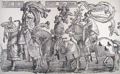 Keywords: Lucas van Leyden 053.jpg woodcut 38 5 × 54 2 cm Rotterdam Museum Boijmans Van Beuningen BdH 11000 PK www geheugenvannederland nl http //www geheugenvannederland nl Home http //www geheugenvannederland nl/ /en/items/BVB01 BDH11000PK Info http //resources21 kb nl/gvn/BVB01/BVB01_BDH11000PK_W JPG Pic Creator Lucas van Leyden ~ 1520 1518-1522 PD-old-100 Prints by Lucas van Leyden 1520 16th-century woodcuts of people Prints in the Museum Boijmans Van Beuningen Leyden Lucas van Nine Worthies David Category Judas Maccabeus Joshua