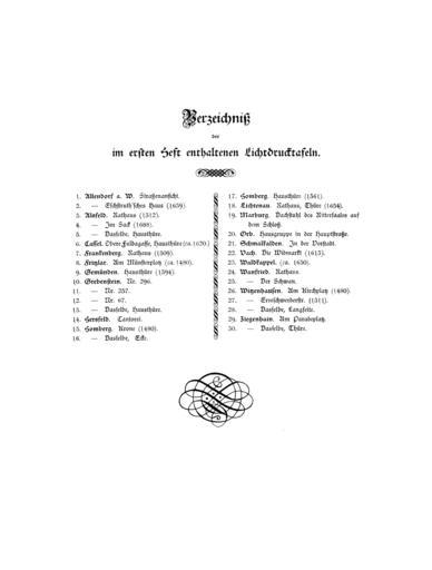 | Keywords: Ludwig Bickell-Hessische Holzbauten-Heft 01-1887-002-Inhaltsverzeichnis.png en Index of the work named below de Inhaltsverzeichnis des unten genannten Werkes Ludwig Bickell Hessische Holzbauten “ Heft 1 mit 30 Lichtdrucktafeln von J B Obernetter in München Verlag von N G Elwert Marburg 1887 Creator Ludwig Bickell 1887 PD-old-100 Hessische Holzbauten “ Heft 1 mit 30 Lichtdrucktafeln von J B Obernetter in München | ||||