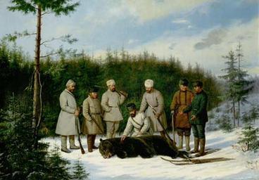 Keywords: Ludwig Pietzsch Russische Bärenjagd.jpg Ludwig Pietzsch Russische Bärenjagd Oil on canvas 45 x 65 cm Creator Ludwig Pietsch PD-old-100 Source http //auktion-bergmann de/ Paintings of hunters in snowy landscapes Ludwig Pietsch People with bears in art Images from Auktionshaus Bergmann Artworks missing infobox template Bear hunting in art |