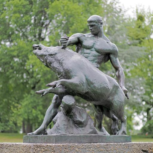 Keywords: Luetzowplatz.Erymanthischer.Eber.jpg de Herkules und der erymanthische Eber von Louis Tuaillon 1904 own Membeth 2015-05-20 Sculptures of Hercules Herkules und der erymantische Eber Louis Tuaillon Taken with Nocticron 42 5mm Cc-zero