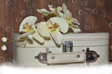 Keywords: luggage orchid medal flower wood