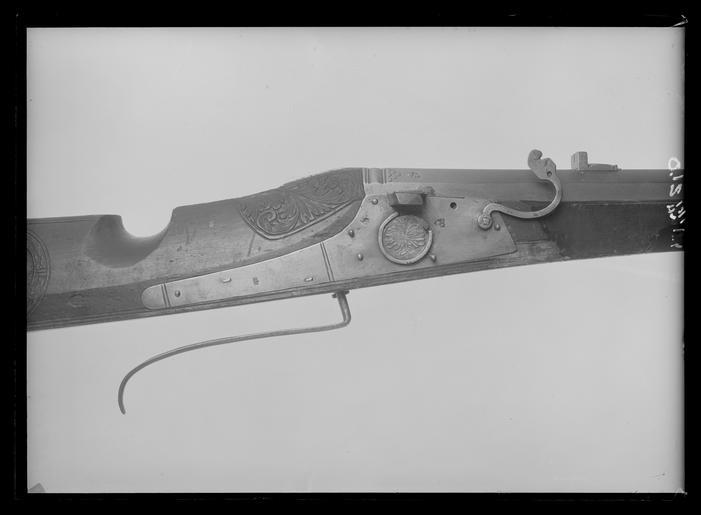 | Keywords: Luntlåsbössa, dubbelhake (mickhake) Suhl, 1598 - Livrustkammaren - 69807.tif Rund pipa av stål åttsidig kammare slätborrat lopp Svansskruv av stål På pipbasens tre övre faser profilerade band På kammarens ovansida etsat 1598 och blommor stämpel N M under två klöverblad samt därnedanför DAVS LRK vägl 1921 203 jfr Stöckelnr 4157 Nürnberg På kammarens sidor SVL LRK vägl 1921 410 jfr Stöckelnr 1641ff samt höna LRK vägl 1921 184 jfr Stöckelnr 1687f Fyra profilerade ränder där kammaren övergår i den runda delen Tandad hake av stål på pipans undersida 470 mm frånmynningen b 40 mm l 140 mm <br/>Riktmedel Inlaxat ståndsikte på klacken en skålformig grop d 21 mm Rakt inlaxat stolpsikte av stål <br/>Fästning Fyra häften Pipan fäst med krysskruv underifrån samt tre pipstift av trä <br/><br/>Luntlås med plant låsbleck l 310 mm stämplat SVL på bakre delen Stöckelnr 1672 Under fängpannan en ring med infälld mässingsplåt med pressad dubbelörn och bokstäverna G K Framför den runda plattan en stämpel H G över krona vägl 1921 382 Stöckelnr 2857 Rektangulär fängpanna med fasade kanter lock som skjuts framåt när avtryckaren trycks in Starkt s-formigt svängd hane luntklämma med graverat öga Klämskruv saknas <br/>Fästning Tre låsskruvar <br/>Lång baktill nedåtböjd hävstångsavtryckare <br/><br/>Svartbetsad helstock av tidig tysk typ rak kolv utan vinge nedskuret tumläge På kolvsidorna snidad mansprofil inom rund lagerkrans Snidade bladslingor på kolvens bakre del på undersidan samt runt svansskruvbladet Snidade bladrankor runt låsskruvarna Vid bakre låsskruven en snidad kvinnoprofil original caption 1598 wood e3 - eldvapen - stock material trä - steel e1247 - eldvapen - pipa lås riktmedel och beslag material stål - brass e6 - eldvapen - låsdekor material mässing size mm 110 g 16250 size mm 1600 pipa size mm 2150 LRK Gustav II Adolf av Sverige Brunkeberg 1975 N M DAVS klöverblad anv e1 - eldvapen - pipa; anonym pipsmed G K anv e2 - eldvapen - lås; anonym låssmed H G krona Stöckelnr 2855-2857 anv e2 - eldvapen - lås; anonym låssmed höna Stöckelnr 1702 anv e1 - eldvapen - pipa; anonym kontrollör SVL Stöckelnr 1672 anv e1 - eldvapen - pipa; anonym kontrollör N M DAVS klöverblad anv e1 - eldvapen - pipa; anonym pipsmed G K anv e2 - eldvapen - lås; anonym låssmed H G krona Stöckelnr 2855-2857 anv e2 - eldvapen - lås; anonym låssmed höna Stöckelnr 1702 anv e1 - eldvapen - pipa; anonym kontrollör SVL Stöckelnr 1672 anv e1 - eldvapen - pipa; anonym kontrollör place of origin original filename LN_B10338_013218 39827 inventory number LRK 3250 69807 CC0 Luntlåsbössa dubbelhake mickhake Suhl 1598 - Livrustkammaren - 69807-negative tif Matchlock muskets images from Livrustkammaren Media contributed by LSH dim-with multiple size templates Media contributed by LSH 2013-10 |
