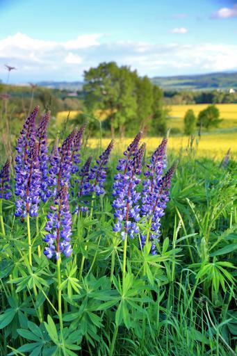Keywords: lupine flowers field rapeseed spring nature bloom plants