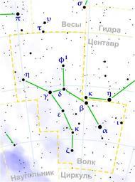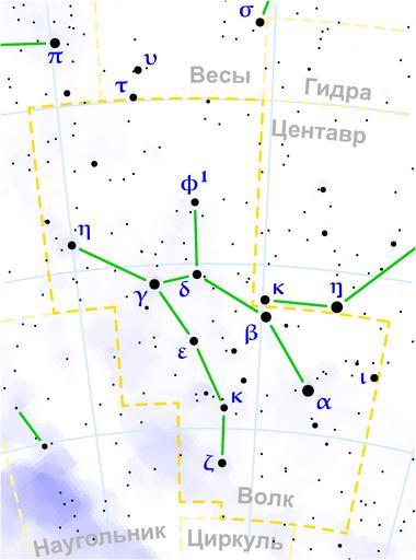 Keywords: Lupus constellation map ru lite.png en Lupus constellation map in Russian ru Ка та созвездия Волка на усском языке It was created using the programs PP3 Miktex 2 5 GhostScript and Gimp At http //pp3 sourceforge net PP3's homepage you also get the input scripts necessary for re-compiling the map The yellow dashed lines are constellation boundaries the red dashed line is the ecliptic and the shades of blue show Milky Way areas of different brightness The map contains all Messier objects except for colliding ones The underlying database contains all stars brighter than 6 5 All coordinates refer to equinox 2000 0 The map is calculated with the equidistant azimuthal projection the zenith being in the center of the image The north pole is to the top The horizontal lines of equal declination are drawn for 0° +10° +20° etc The lines of equal rectascension are drawn for all 24 hours Towards the rim there is a very slight magnification and distortion own 2007-02-23 Anton Gutsunaev Constellations maps russian |