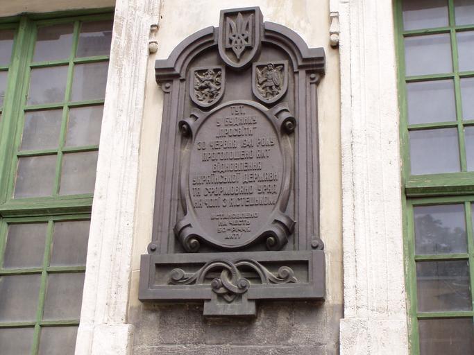 Keywords: LvivRynek1941.JPG pl Tablica na Rynku we Lwowie upamiętniająca ogłoszenie Aktu Odrodzenia Państwa Ukraińskiego w 1941 Own Birczanin Commemorative plaques in Lviv Lubomirski Palace Lviv