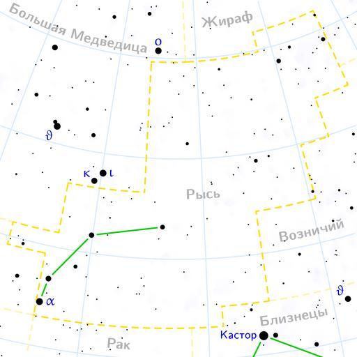 Keywords: Lynx constellation map ru lite.png en Lynx constellation map on Russian ru Ка та созвездия Рыси на усском языке Copyright © 2006 Denis Ibaev It was created by Denis Ibaev using the program PP3 on 24th January 2006 At http //pp3 sourceforge net PP3's homepage you also get the input scripts necessary for re-compiling the map The yellow dashed lines are constellation boundaries the red dashed line is the ecliptic and the shades of blue show Milky Way areas of different brightness The map contains all Messier objects except for colliding ones The underlying database contains all stars brighter than 6 5 All coordinates refer to equinox 2000 0 The map is calculated with the equidistant azimuthal projection the zenith being in the center of the image The north pole is to the top The horizontal lines of equal declination are drawn for 0° +10° +20° etc The lines of equal rectascension are drawn for all 24 hours Towards the rim there is a very slight magnification and distortion Constellations maps russian |