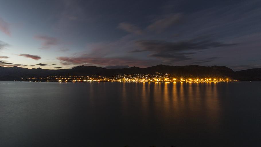 Keywords: lyttelton new zealand sea bay pacific ocean calm water sun nature blue night lights