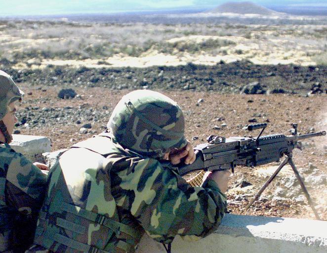 Keywords: M249 FN MINIMI DM-SD-02-03650.jpg US Marine Corps Private First Class J Heredia fires at a target with the M249 Squad Automatic Weapon and US Marine Corps Private J Williams PFC Heredia's Assistant Gunner both of whom are from the Headquarters Company of the 3rd Marine Regiment watches his impact area These Marines fired at a range in the Pohakuloa Training Area Hawaii Substandard image Location POHAKULOA TRAINING AREA HAWAII HI UNITED STATES OF AMERICA USA Camera Operator LCPL TY HARDIN USMC Date Shot 29 Jan 2001 source http //www dodmedia osd mil/DVIC_View/Still_Details cfm SDAN DMSD0203650 JPGPath /Assets/Still/2002/Marines/DM-SD-02-03650 JPG PD-USGov M249 light machine guns 2001 photographs Military people in 2001 2001 in Hawaii 2001 events in the United States 29 January January 2001 in the United States PASGT Battle Dress Uniform in 2001 Male soldiers People of the United States in 2001 Pohakuloa Training Area United States Marine Corps training Military people on duty |