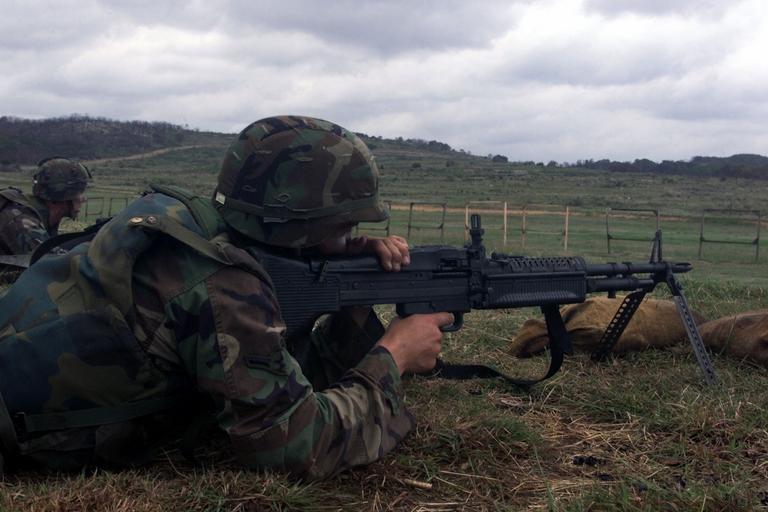 Keywords: M60 machine gun DF-SD-02-01164.jpg US Air Force Airman Scott Paneton US Air Forces in Europe armed with an M60 machine gun focuses on an enemy target during DEFENDER CHALLENGE 2000 at Lackland Air Force Base Texas Defender Challenge is the annual Air Force wide competition sponsored by Air Force Security Forces This competition showcases the talents and capabilities of 13 international Security Forces teams in 24 events over six days Location LACKLAND AIR FORCE BASE TEXAS TX UNITED STATES OF AMERICA USA Camera Operator SRA JEANETTE COPELAND USAF Date Shot 1 Nov 2000 source http //www dodmedia osd mil/DVIC_View/Still_Details cfm SDAN DFSD0201164 JPGPath /Assets/Still/2002/Air_Force/DF-SD-02-01164 JPG PD-USGov M60 machine gun United States Air Force Security Forces Lackland Air Force Base Defender Challenge |