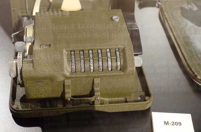 Keywords: M-209 mechanical cipher machine, Smith Corona - National Electronics Museum - DSC00207.JPG en Exhibit in the National Electronics Museum 1745 West Nursery Road Linthicum Maryland USA All items in this museum are unclassified The museum permitted photography without restriction 2014-07-21 14 48 44 own Daderot cc-zero Uploaded with UploadWizard Cryptography equipment in the National Electronics Museum M-209 |