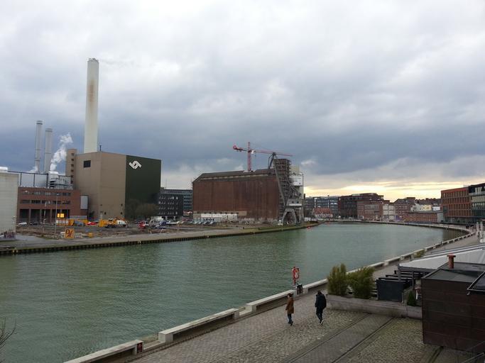 Keywords: münster port industry building channel water clouds city westfalen weather mood weather mood atmosphere gloomy
