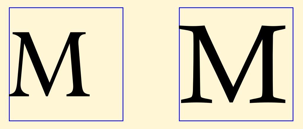 Keywords: M versus em.svg Diagram showing that the width of a capital M is less than an em wide Proportional to the font used each box is one em square The M on the left is in Perpetua a typeface with relatively narrow characters the one on the right is in Calisto with relatively wide characters own 20 49 24 May 2007 UTC Angr M |