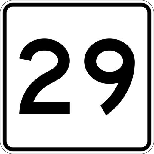 | Keywords: MA Route 29.svg  600 mm by 600 mm 24 in by 24 in Massachusetts Route shield made to the specifications of the http //166 90 180 162/mhd/downloads/manuals/1996Mconst pdf 1996 edition of Construction and Traffic Standard Details sign M1-5 Uses the http //www triskele com/fonts/index html Roadgeek 2005 fonts United States law does not permit the copyrighting of typeface designs and the fonts are meant to be copies of a U S Government-produced work anyway The outside border has a width of 1 1 mm and a color of black so it shows up; in reality signs have no outside border The specs actually do not show the curve on the outside border instead making it a perfect square but all signs I have seen round the corners own SPUI spuiother Diagrams of Massachusetts Route shields |