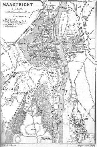 | Keywords: Maastricht 1905.jpg nl Kaart van Maastricht uit 1905 De buurtspoorlijn van Boschpoort naar Glons is te zien te zien evenals de stadstramlijn van het station naar de Grote markt en de Boulevard Het stationsgebouw is niet aan de stadszijde 1905 Baedeker Belgique et Hollande 1905 page 92 Anstalt von Wagner Debes Leipzig Custom license marker 2013 11 24 PD-old-70-1923 Compagny work Baedeker Belgique et Hollande 1905 Wagner Debes 1905 maps of the Netherlands Netherlands Uploaded with UploadWizard Old maps of Maastricht Former vicinal railway lines in Belgium Trams in Maastricht |