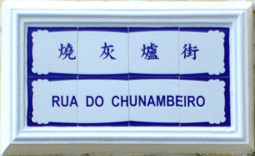 Keywords: MacauStreetSign RuaDoChunambeiro 1.jpg 燒灰爐街 pt Rua do Chunambeiro 2012-08-13 17 39 47 own Cdip150 cc-zero Uploaded with UploadWizard Street signs in Macau