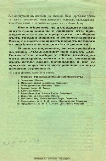 | Keywords: Macedonia Mountain Hut Donation02.jpg Покана за да ителство за ст оеж на хижа акедония http //ajgidik com/index php option com_content view article id 87 catid 45 sectionid 6 Itemid 55 1933 Author Anonymous-EU Makedonia hut Rila Documents in Bulgarian |
