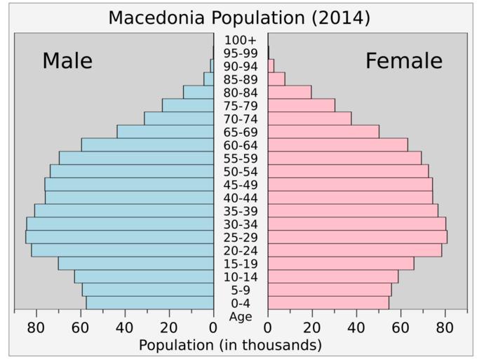 | Keywords: Macedoniapop.svg  translate yes en Current population pyramid of Macedonia 2014 from UN estimates World Population Prospects http //esa un org/unpd/wpp/Excel-Data/population htm The 2012 Revision 2014-08-26 own Delphi234 cc-zero Uploaded with UploadWizard Population pyramids of Macedonia |
