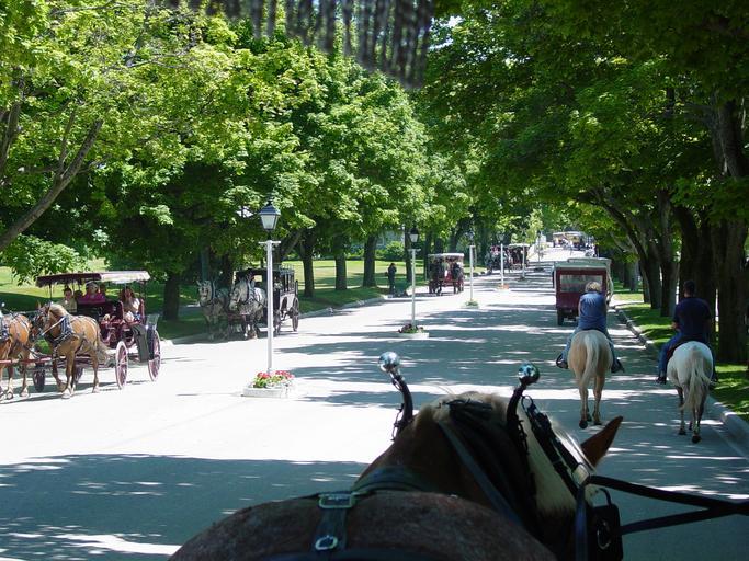 Keywords: mackinac island michigan island water lake visitors tourism carriage horse-drawn carriage nostalgia horses tourist carriage rides wagon means of transport