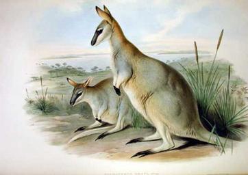 Keywords: Macropus greyi - Gould.jpg Macropus greyi orig Halmaturus greyi John Gould F R S Mammals of Australia Vol II Plate 19 London 1863 <br> http //www museum vic gov au/bioinformatics/mammals/images/Hal_grey htm 1863 creator John Gould PD-old-100-1923 Macropus greyi The Mammals of Australia John Gould Extinct mammals illustrated while extant |