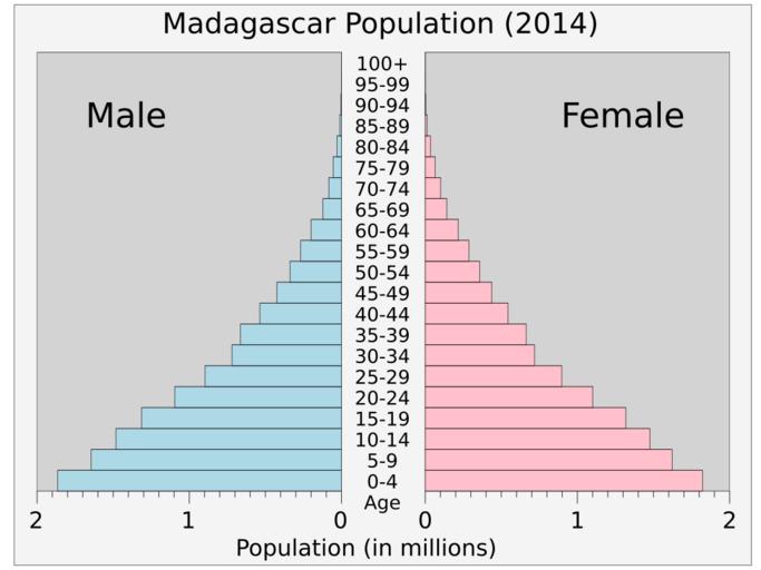 | Keywords: Madagascarpop.svg  translate yes en Current population pyramid of Madagascar 2014 from UN estimates World Population Prospects http //esa un org/unpd/wpp/Excel-Data/population htm The 2012 Revision 2014-08-26 own Delphi234 cc-zero Population pyramids of Madagascar Uploaded with UploadWizard |