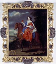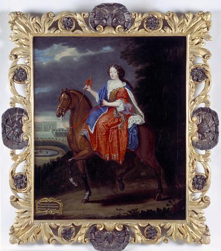 | Keywords: Madame la Duchesse d´Aumont , f.1651.Oljemålning på duk - Skoklosters slott - 22417.tif  Francoise Angelique de Lamotte-Houndancourt hertiginna plain text sv Helfigur på häst I fonden park med palats Versailles Röd guldbroderad klänning Vit spetskrage och manschetter Blå hermelinsbrämad mantel I höger hand röda tyglar i vänster hand spö med röd rosett <br/>På duken Francoise Angelique de La Motte D´Avdencour Duchesse Daumont På dukens baksida N55 Pour Monseigr Le Duc Daumont <br/>På spännramen skrivet med blyerts N23 lapp med bläckskrift <br/> 3523 MR LUNDBERG Reut På ramens överdel 55 <br/>Förgylld snidad ram med akantusblad En försilvrad mussla på vardera sidan <br/>Listens bredd 115 mm <br/>Madame la Duchesse d´Aumont f 1651 <br/>Francoise-Angeligue de la Motte d´Houdancoust dotter till Philippe hertig av Cardonne 1669 g m Louis-Marie-Victoire d´Aumont de Rockebaron 1632-1704 pair och marskalk av Frankrike förste statssekreterare guvernör mm hertig av Aumont i hans 2 a gifte original caption decade 1670 oil on canvas size mm 570 680 SKO Nils Bielke greve fältmarskalk 1644-1716 André Le Nôtre in perspective 1613-2013 2013-2014 Palace of Versailles place of origin original filename sm_t11309_3144 24470 inventory number SKO 3144 22417 PD Samuel Uhrdin Samuel Uhrdin Portrait paintings Media contributed by LSH unmatched creator Joseph Parrocel Pierre Mignard Media contributed by LSH tag as oil on canvas Media contributed by LSH 2014-06 |