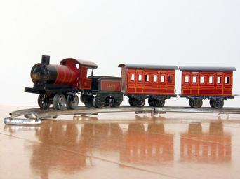 Keywords: Made in Germany Tin clockwork toy train from around 1900 pic-016.JPG Made in Germany Tin clockwork toy train from around 1900 own 2012-10-14 14 49 04 AlfvanBeem CC-zero Tin toy trains Toys from Germany Nostalgia by Alf van Beem