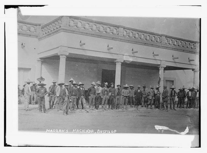 | Keywords: Madero's Hacienda, Bustillo (LOC).jpg Bain News Service publisher Madero's Hacienda Bustillo between 1910 and 1915 1 negative glass ; 5 x 7 in or smaller <b>Notes </b> Title from unverified data provided by the Bain News Service on the negatives or caption cards Forms part of George Grantham Bain Collection Library of Congress <b>Subjects </b> Mexico <b>Format </b> Glass negatives <b>Rights Info </b> No known restrictions on publication <b>Repository </b> Library of Congress Prints and Photographs Division Washington D C 20540 USA <a href http //hdl loc gov/loc pnp/pp print >hdl loc gov/loc pnp/pp print</a> General information about the Bain Collection is available at <a href http //hdl loc gov/loc pnp/pp ggbain >hdl loc gov/loc pnp/pp ggbain</a> <b>Persistent URL </b> <a href http //hdl loc gov/loc pnp/ggbain 09183 >hdl loc gov/loc pnp/ggbain 09183</a> <b>Call Number </b> LC-B2- 2195-3 originally posted to Flickr as http //flickr com/photos/8623220 N02/2162658363 Madero's Hacienda Bustillo LOC 1910-01-01 00 00 00 http //flickr com/photos/8623220 N02 The Library of Congress User Flickr upload bot/upload-pd 04 55 26 February 2009 UTC Eluser PD-Old Mexican Revolution Mexico in the 1910s Francisco I Madero |