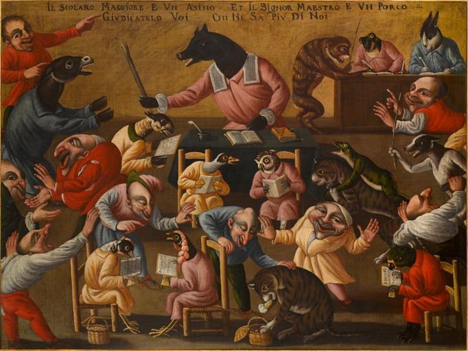 Keywords: Maestro della Fertilità dell'Uovo - Grotesque Scene with Animals and Stylised Figures No. 2.jpg Artwork creator Maestro della Fertilità dell'Uovo en Grotesque Scene with Animals and Stylised Figures No 2 17th century http //www ruzhnikov com/grotesque-scene-with-animals-and-stylised-figures-2/ oil canvas cm 90 120 The Ruzhnikov Collection Other versions PD-old-100 Maestro della Fertilità dell'Uovo Animals acting as humans in art Animals with human clothing World upside down |