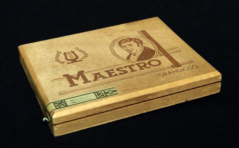 Keywords: Maestro Grandioso sigaren doos, foto3.JPG Very old packaging of a Dutch product that is not produced and/or not sold any more own 2014-03-16 14 02 33 Alf van Beem CC-Zero Trademarked Maestro cigars